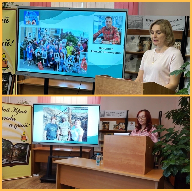 "Герои сегодняшнего дня". В этом блоке сотрудники борских библиотек рассказали о земляках‑борчанах, проявивших героизм в современных условиях и деятельности местных волонтерских организаций, помогающих участникам СВО.